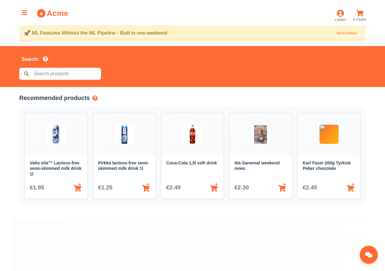 Try the full e-commerce demo → See recommendations in action in a complete grocery store app.